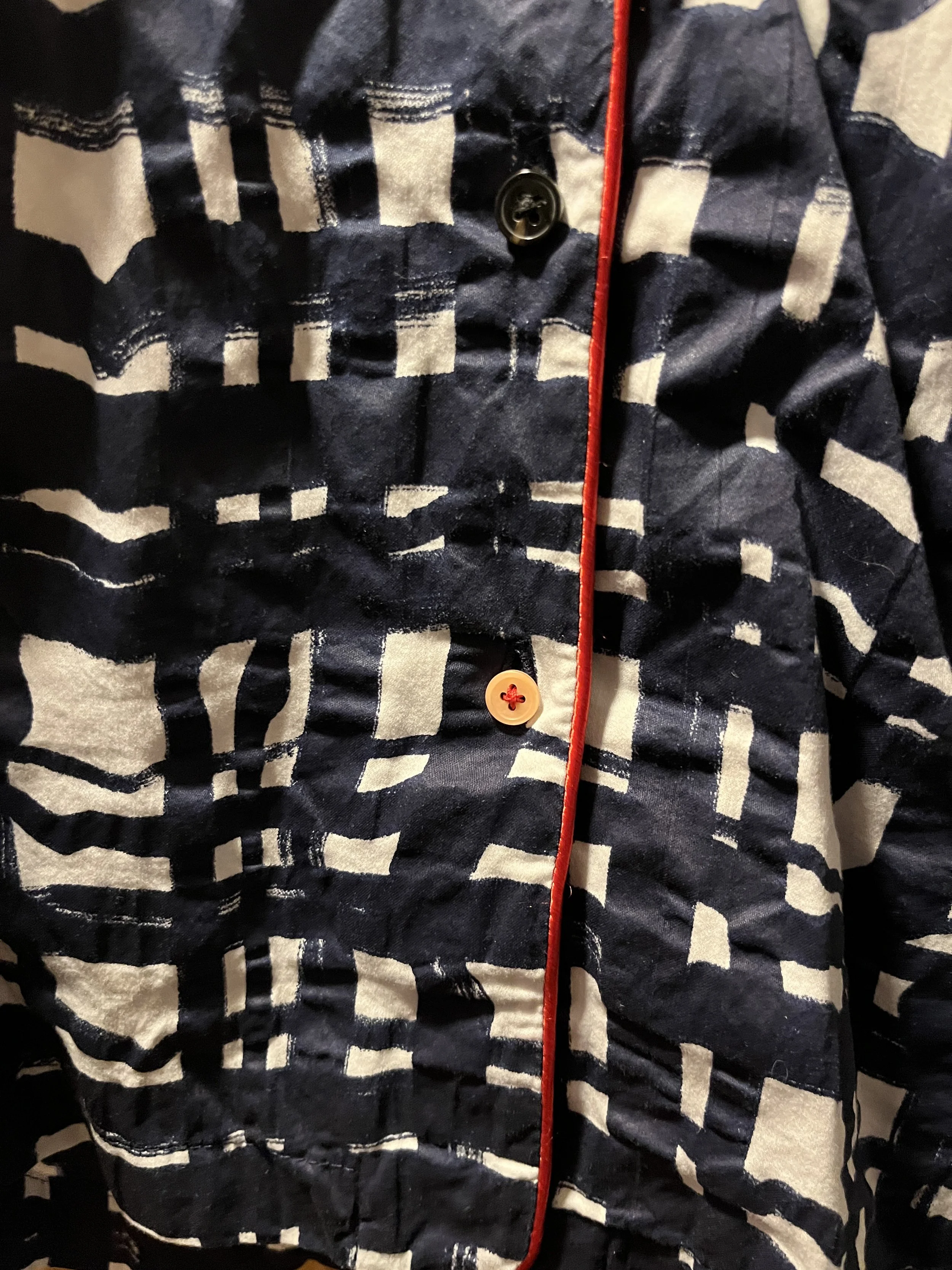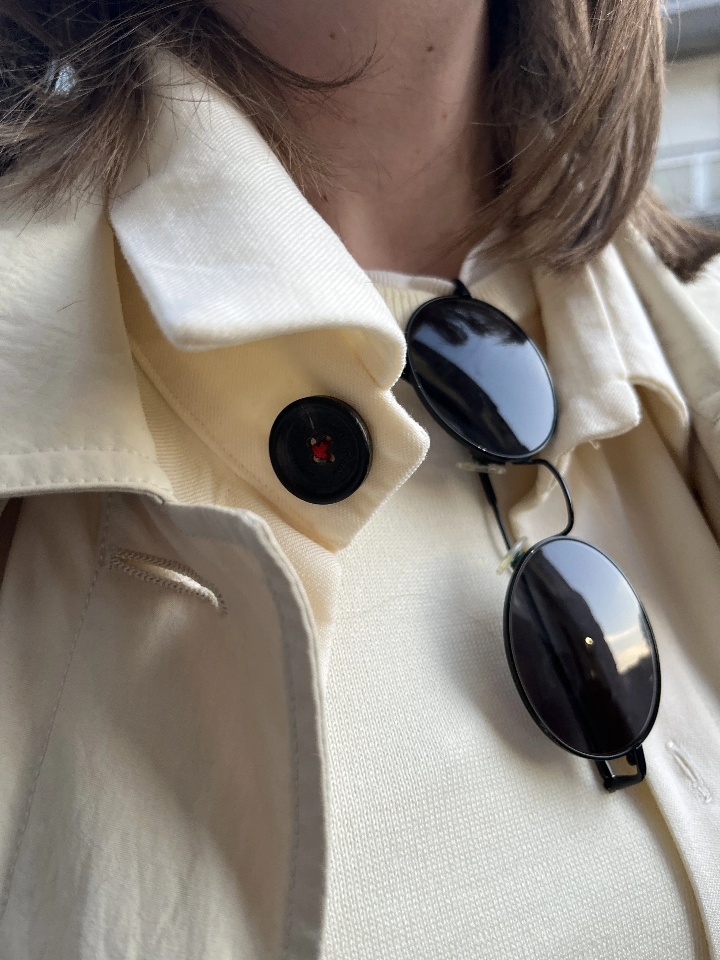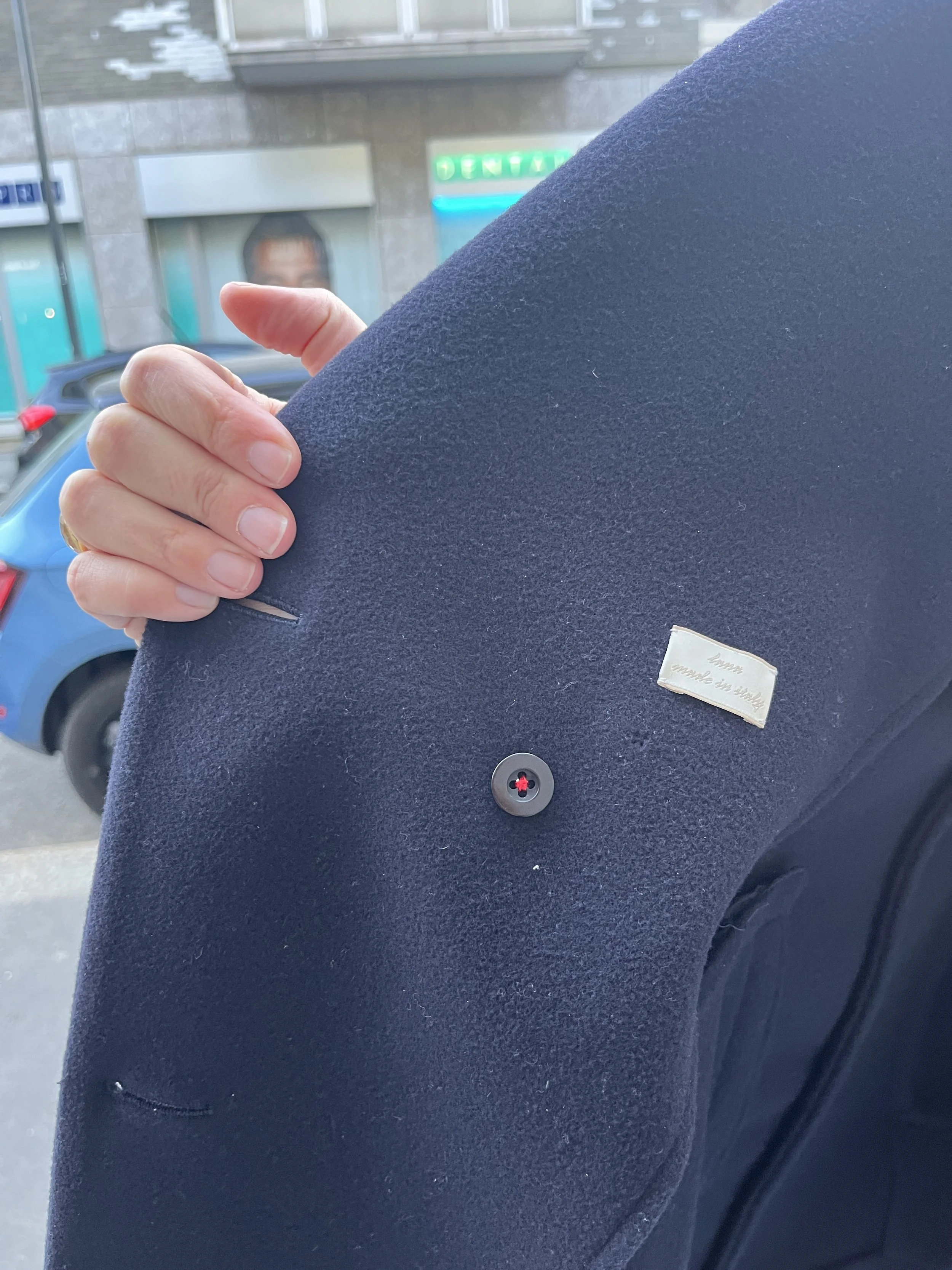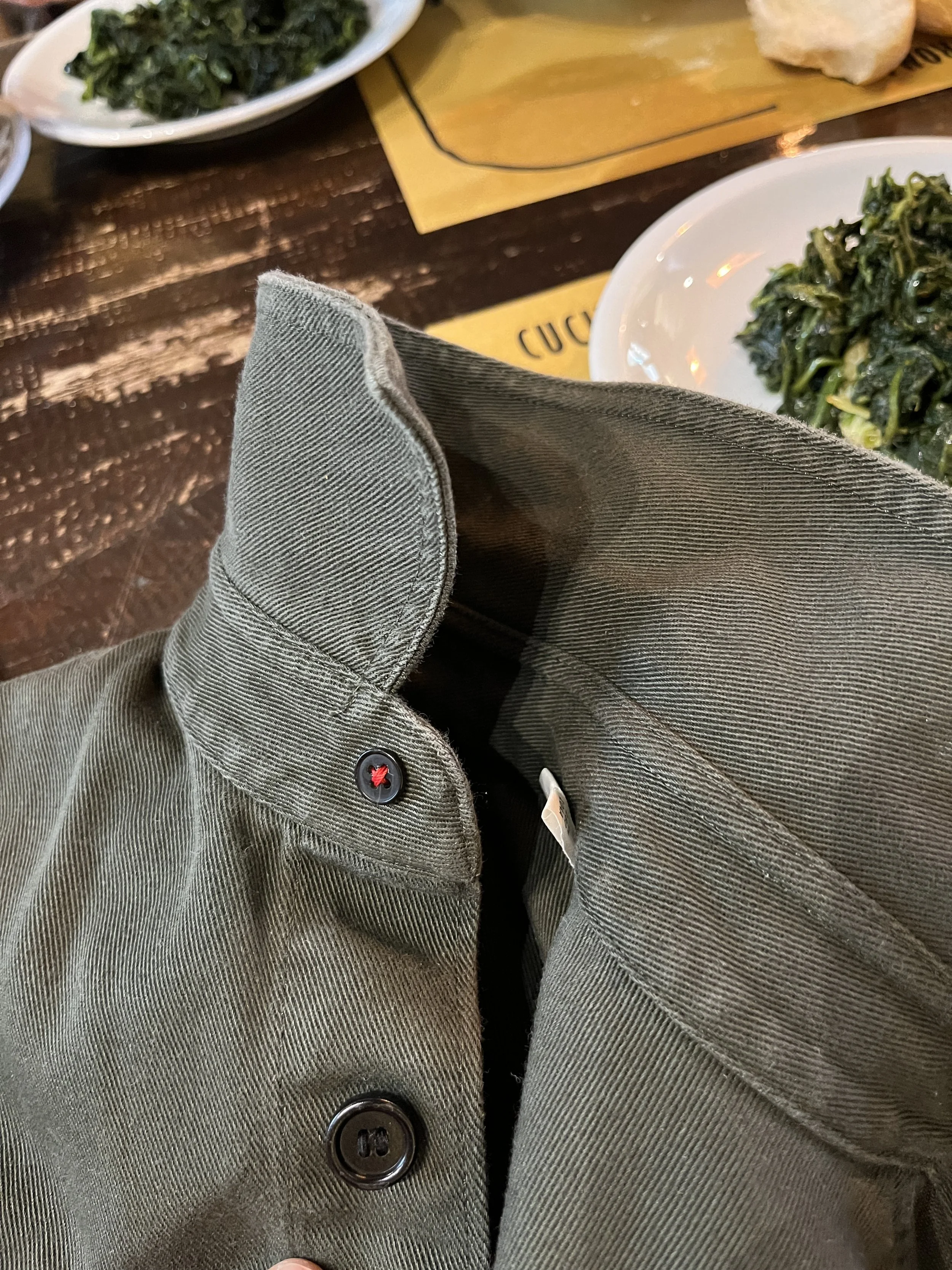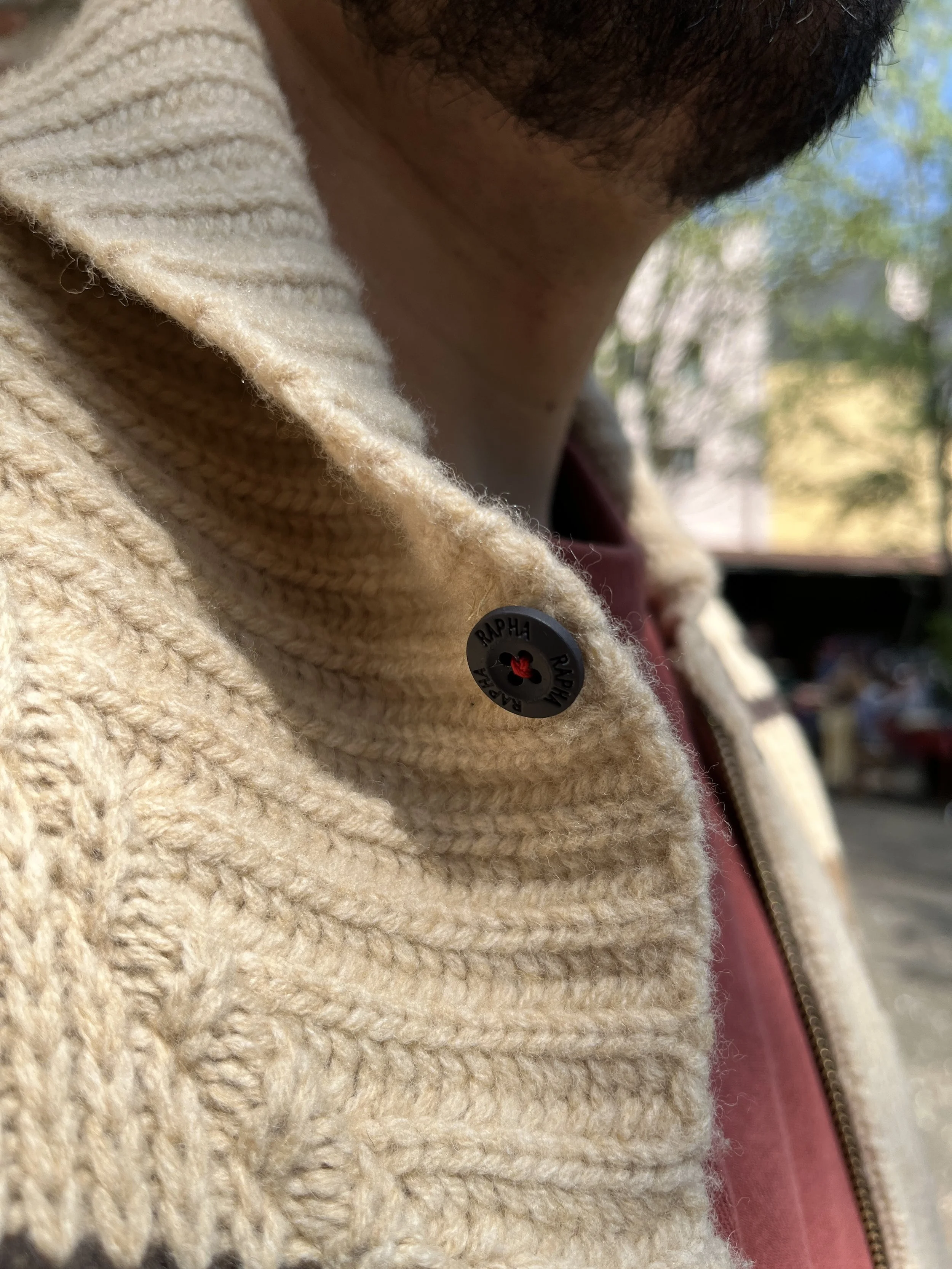 People were invited to participate by allowing one of the buttons on their clothing to be removed and replaced with a button from the previous participant. The new button is sewn on carefully with red thread. This process is repeated with the next participant. Sixty buttons were exchanged, one person at a time.