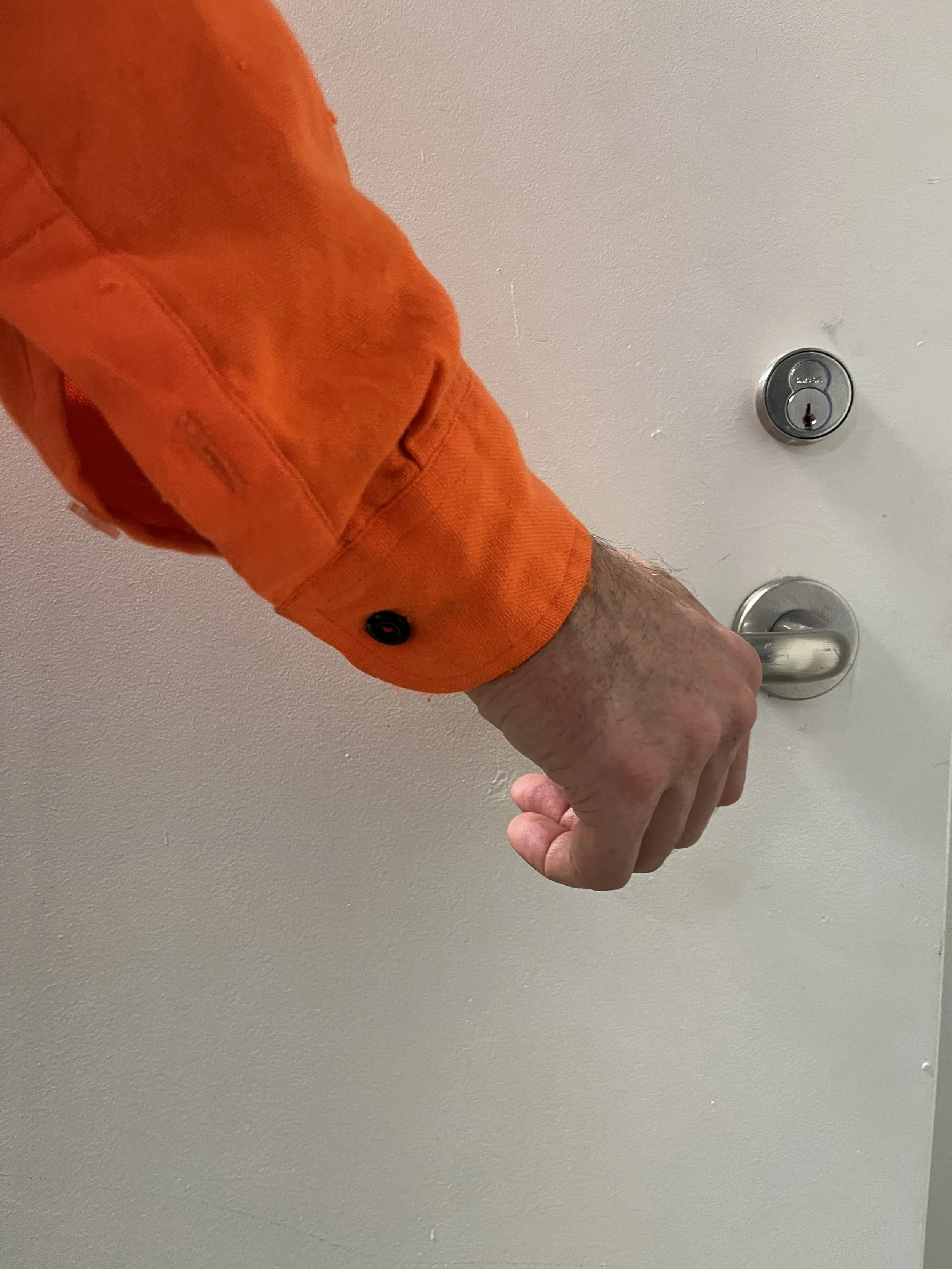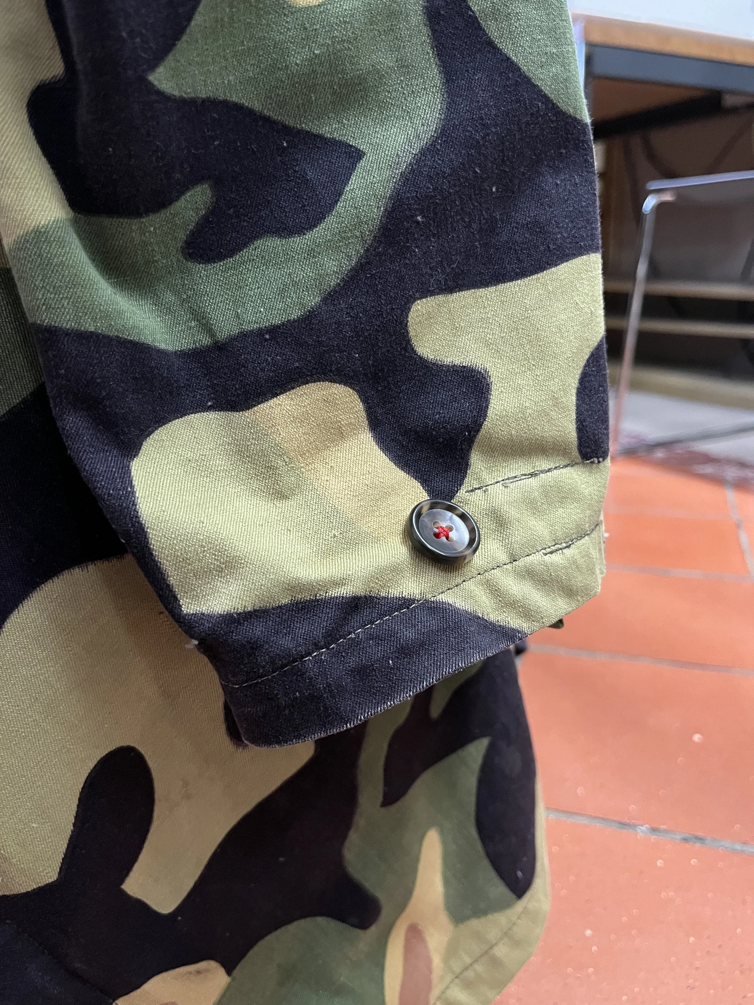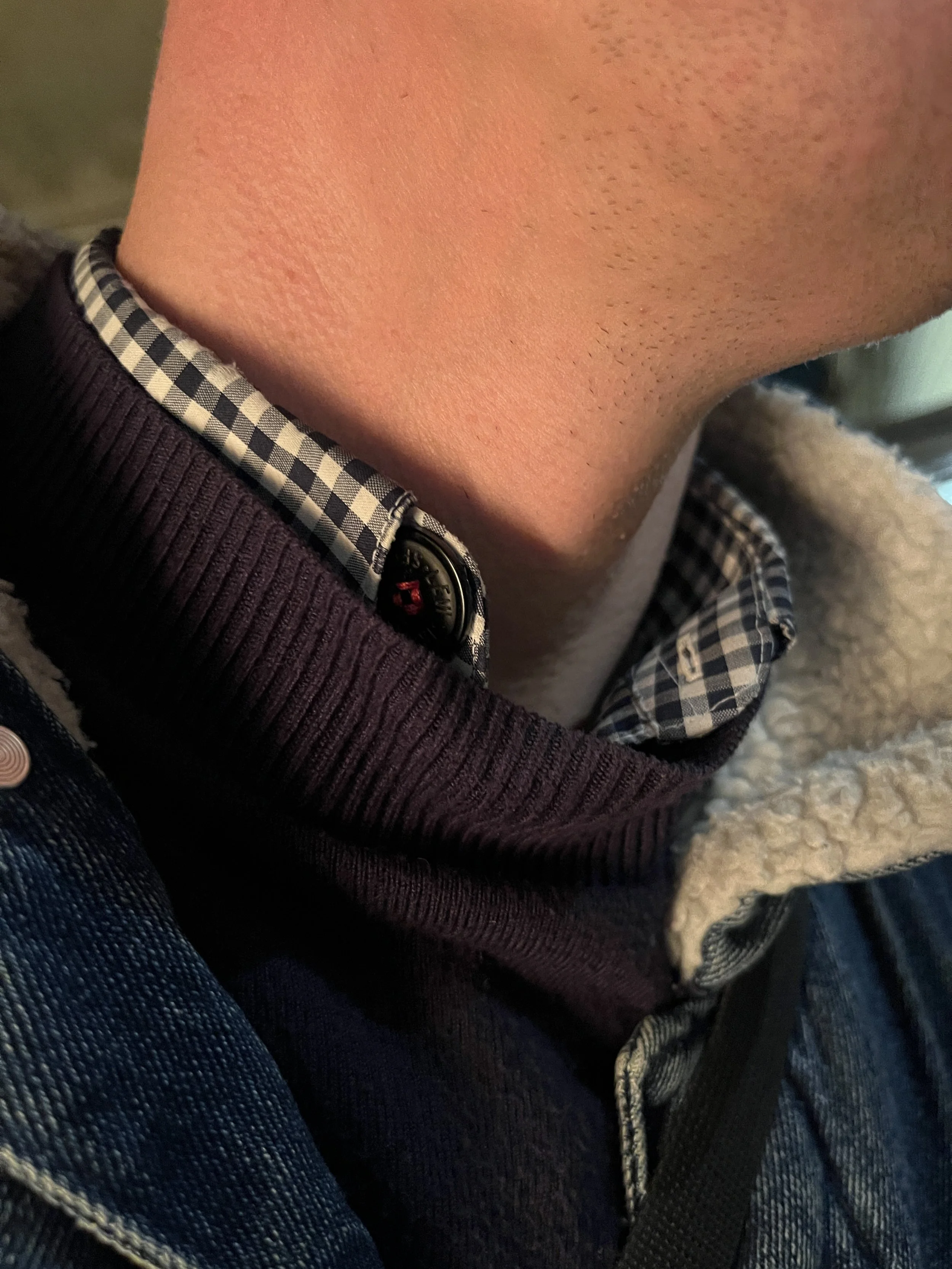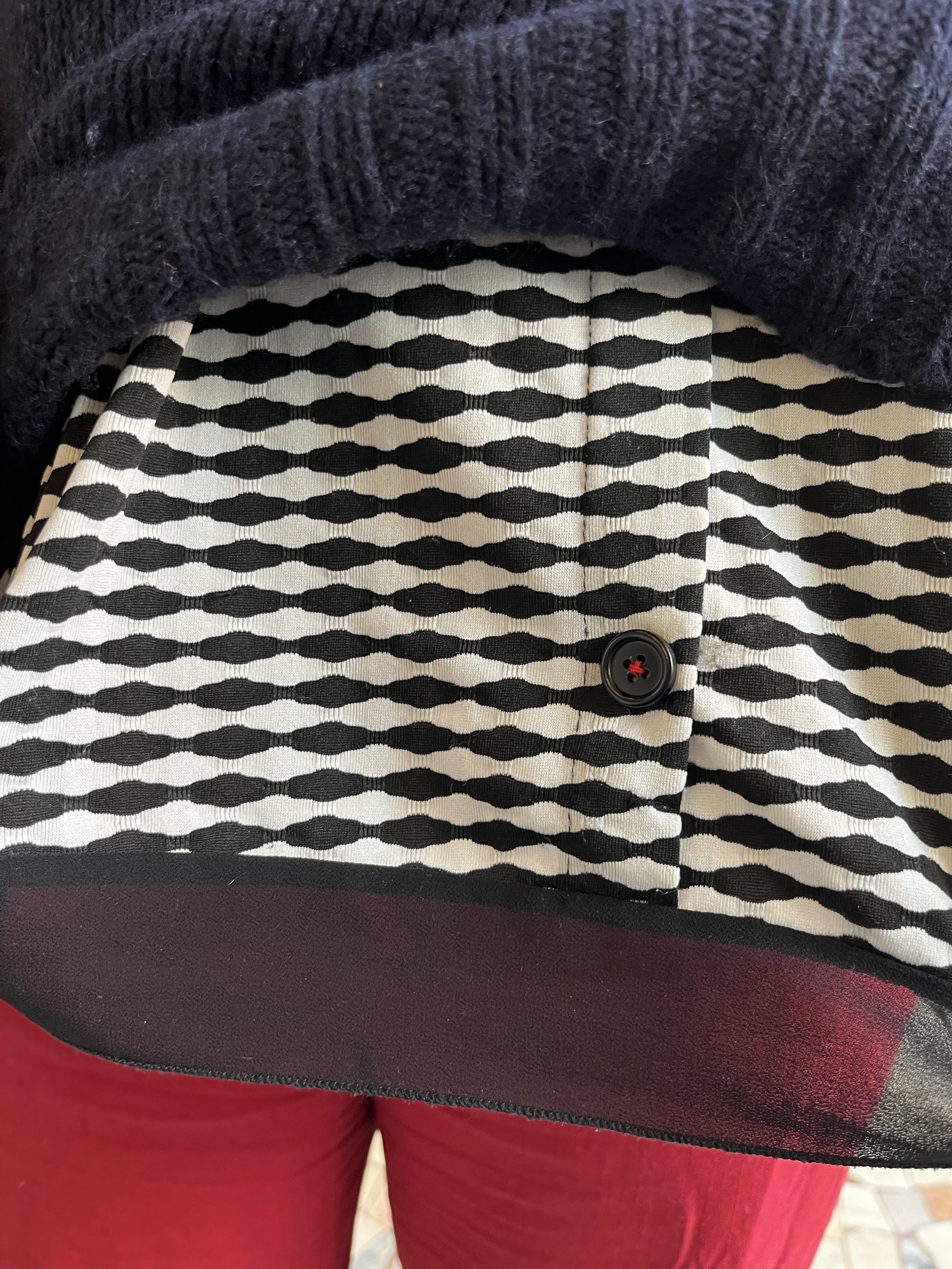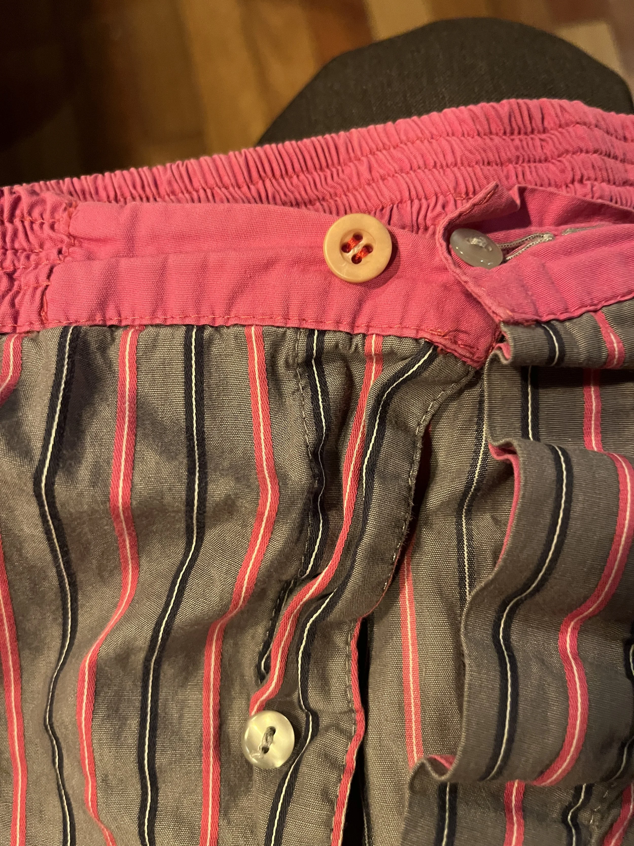 People were invited to participate by allowing one of the buttons on their clothing to be removed and replaced with a button from the previous participant. The new button is sewn on carefully with red thread. This process is repeated with the next participant. Sixty buttons were exchanged, one person at a time.